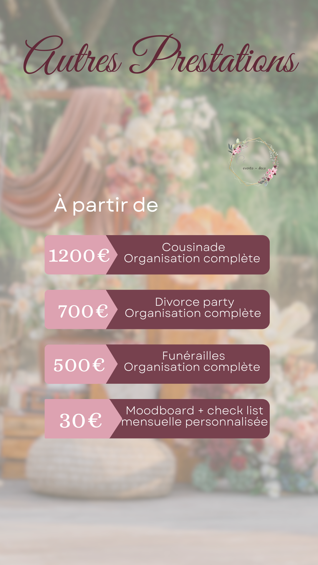 Cousinade,Divorce party ,funérailles, ou toute autre célébration : chaque occasion devient unique grâce à un accompagnement complet, de la préparation à la coordination du jour J.